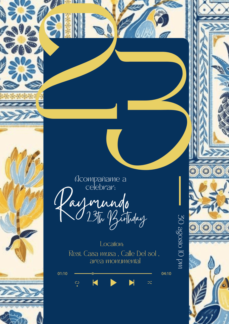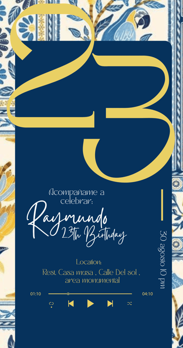 Con nuestras invitaciones digitales, puedes comenzar tu gran evento con el pie derecho. Puedes añadir el diseño que quieras, y añadirle una musica.